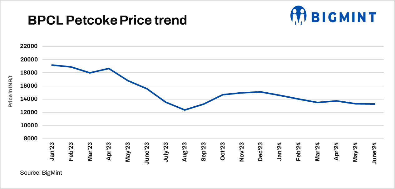 BPCL has revised pet coke prices from its various refineries for June’24 shipments. Current prices-