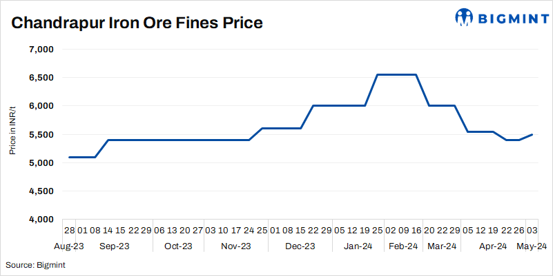 - Current offers are at INR 5,500/t as against INR 5,400/t FOR Balharshah assessed on 26 Apr’24. Meanwhile, lumps offers remained stable at INR 9,100/t FOR Chandrapur.
