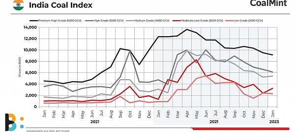 CoalMint’s flagship India Coal Index (ICI) extended its decline in January 2023 owing to overall dull market conditions and prices remained depressed despite the low volumes offered at auctions. However, mid-CV coal prices increased on active power sector demand.