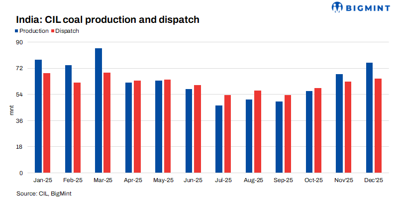 India: Coal production, offtake rebound m-o-m in Dec’25; logistics hold steady