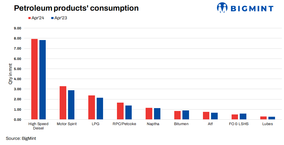 - HSD has highest petroleum consumption share at 39.9% in April 2024