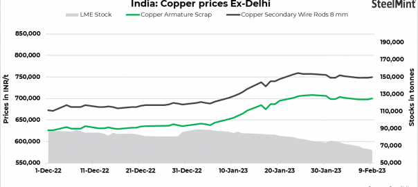 India’s copper market saw an increase in prices d-o-d today. Armature scrap prices stood at INR 700,000/t exy-Delhi. Primary copper rods prices rose 0.6% to INR 800,000/t while secondary rods prices stood at INR 750,000/t, both on ex-Delhi basis. Prices rose as demand recovered after remaining firm for past few weeks. However, the availability of material is tight in the market.