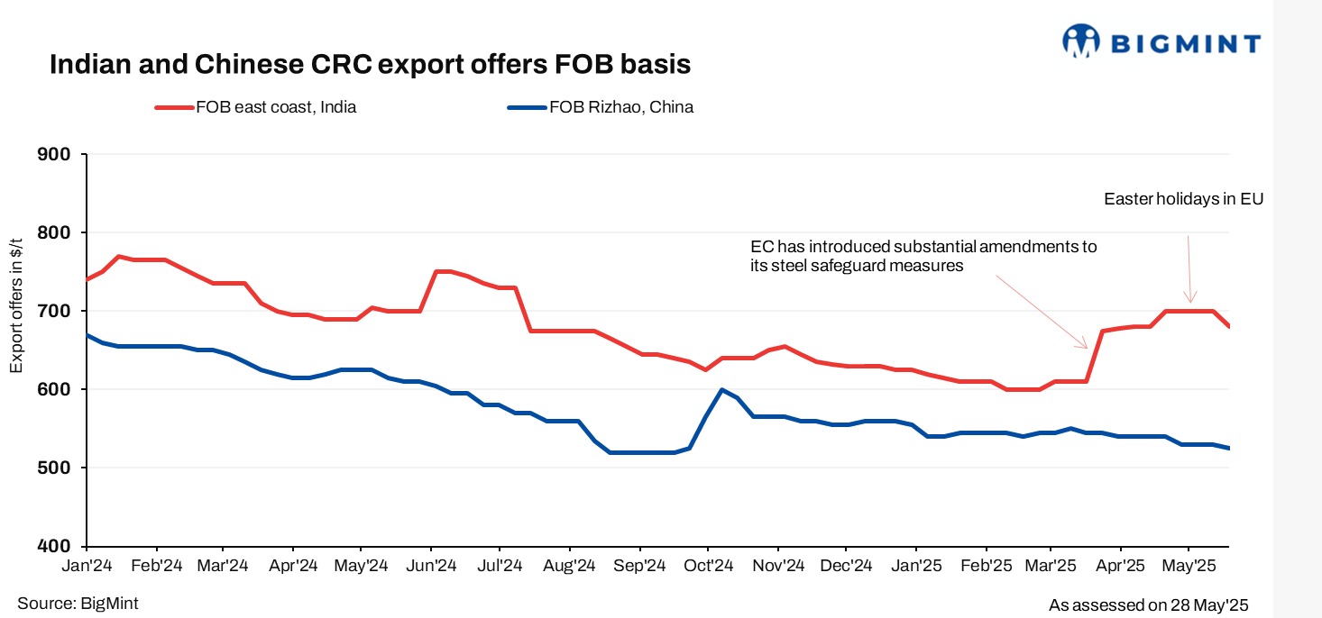 India: CRC export offers to EU remain stable w-o-w amid weak demand