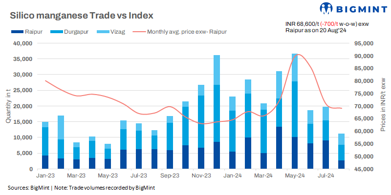 Domestic silico manganese prices may see a slight decline in the near term due to cautious consumption by steel mills and a lack of export inquiries. Additionally, delays in trade finalisation are adding further downward pressure on prices.