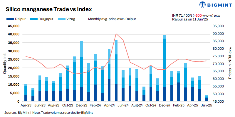 Subdued demand sets off price war: Competitive pricing from Raigarh and Durgapur, with tags ranging between INR 70,500-71,500/t exw, intensified pressure on domestic silico manganese producers. Smelters in Raipur and Vizag, which were initially reluctant to cut prices, were forced to reconsider due to sluggish demand from steel mills. The result: a challenging market landscape marked by price undercutting and cautious buying.