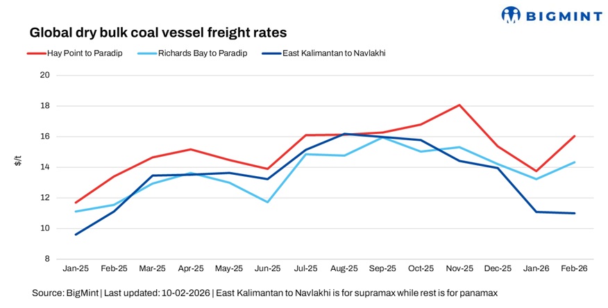 Dry bulk coal freight rates to India for Supramax and Panamax were largely unchanged w-o-w, as subdued fixing activity in the Indian Ocean kept market sentiment muted. Limited fresh cargo enquiries and low fixture volumes continued to cap any rate hikes.