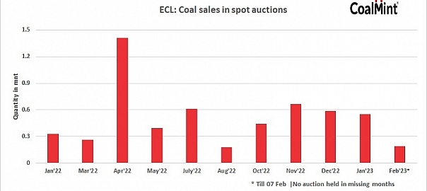 Eastern Coalfields Ltd (ECL) has scheduled an auction for 120,710 t of non-coking coal on 7 Feb. The offering comprises grades of G4, G5, and G6, of which G4 grade constitutes 60% of the total offering. Of the entire material, 15 rakes (58,500 t) of G4 is available through rail mode while the remaining through road mode.