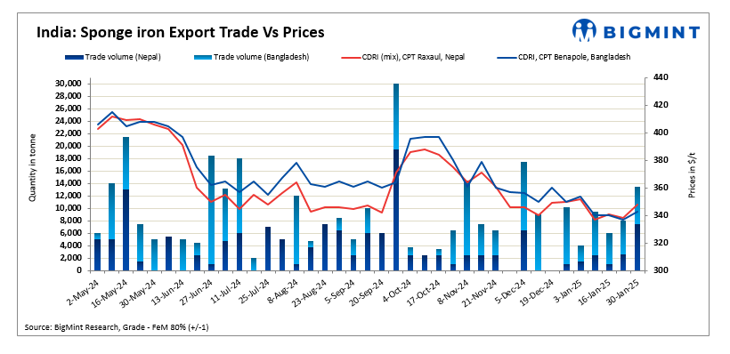 India’s sponge iron export offers for Nepal and Bangladesh surged by $6-10/t w-o-w, driven by improved buying interest amid varying offers. Deals for approximately 13,500 t were concluded for both markets this week.