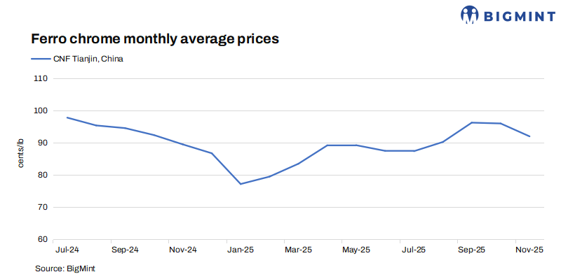 India: Ferro chrome export prices hold steady w-o-w