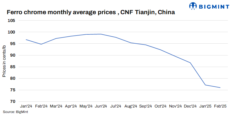 Indian ferro chrome export prices to China remained stable w-o-w at 76 cents/lb CNF, as trading activity slowed down due to Chinese Lunar New Year holidays. Sellers expect a rebound post-holidays, adding to price stability. Similarly, prices for Japan and South Korea held firm w-o-w at 91 cents/lb CNF and 82 cents/lb CNF, respectively.