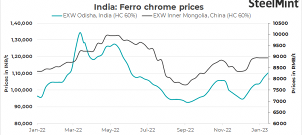 Indian ferro chrome prices increased by INR 2,700/t w-o-w on good export demand. Meanwhile, production cuts in South Africa and Zimbabwe due to electricity supply shortage turned the overseas buyers’ interest from these countries to the Indian market.