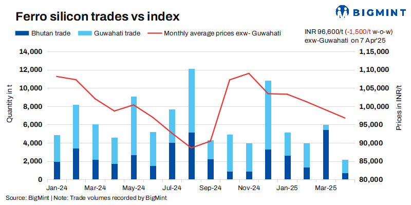 Indian ferro silicon (70%) prices dropped by INR 1,500/t ($17/t) as compared to the previous assessment on 31 March. The decline was driven by the announcement of Bhutan offers for April 2025, whereby sellers from northeast India aligned their offers accordingly.