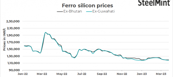 According to SteelMint’s assessment on 24 March, ferro silicon (70%) prices were hovering at INR 117,500-120,000/t exw from the major producing hubs of Guwahati and Bhutan, with 1,000 t of transactions heard this week.
