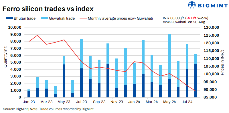 Spot market witnesses limited trades: In the previous week, only t of deals were reported to BigMint, a significant decrease from the 5,000 t reported in the week before. This decline in spot market activity is partly due to some sellers focusing on fulfilling tender orders, including those from Steel Authority of India Limited (SAIL), which limited the availability of supplies in the spot market. Additionally, the ongoing festival season further suppressed demand for ferro silicon this week.