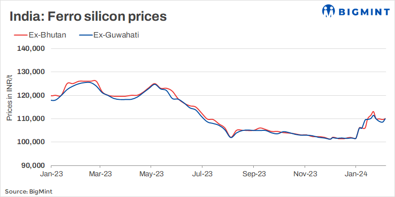 As per BigMint’s assessment on 5 February, Indian ferro silicon prices stood at INR 110,000/t ($1,324/t) exw-Guwahati. Bhutan’s prices stayed steady at INR 110,000/t ($1,324/t) exw.