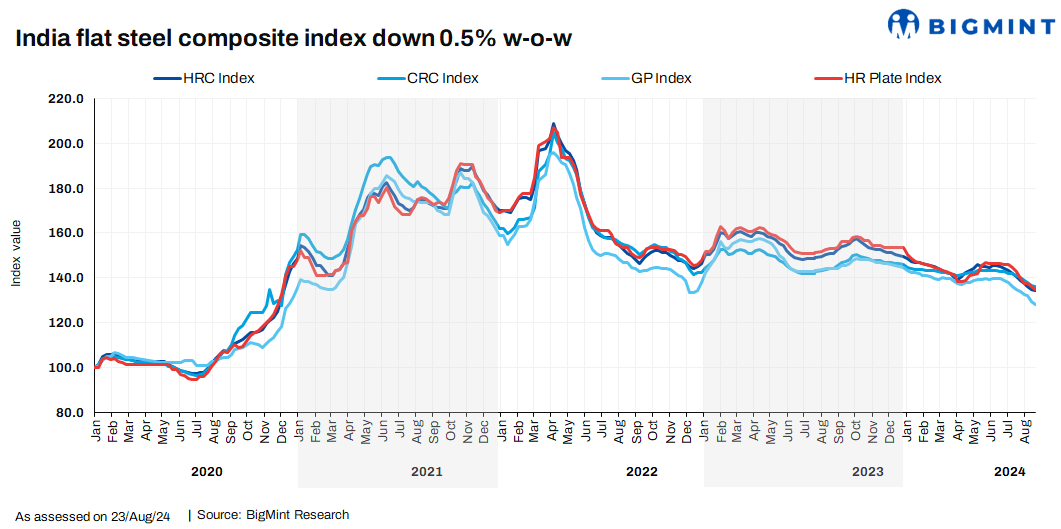 India Flat Steel Composite Index Down by 0.5 % w-o-w.