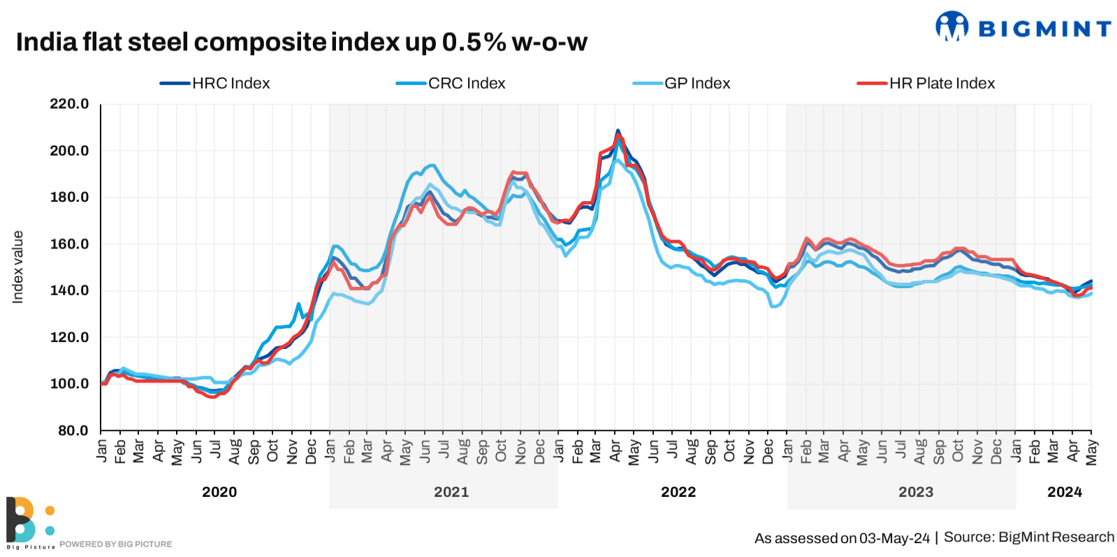 As with rebars, mills undertook strategic maintenance shutdowns in April. This included 15-day shutdowns of a hot strip mill (HSM) and a cold rolling mill (CRM) of a large tier-1 producer. The shortfall in CRCs is estimated at 90,000 t, over the last fortnight. The supply tightness supported the price hike of around INR 500/t ($6/t) taken by tier-1 mills for end-April sales. Post-hike, list prices of HRCs stood at INR 53,500-54,000/t ($642-648/t), and CRCs at INR 58,800-60,500/t ($705-725) both exy-Mumbai, excluding 18% GST. On cue, trade-level prices of CTL HRCs of 2.5-8mm rose by INR 500/t ($6/t) to INR 53,900/t ($646/t) ex-Mumbai. The price hikes encouraged need-based procurements from end-users in small parcels.