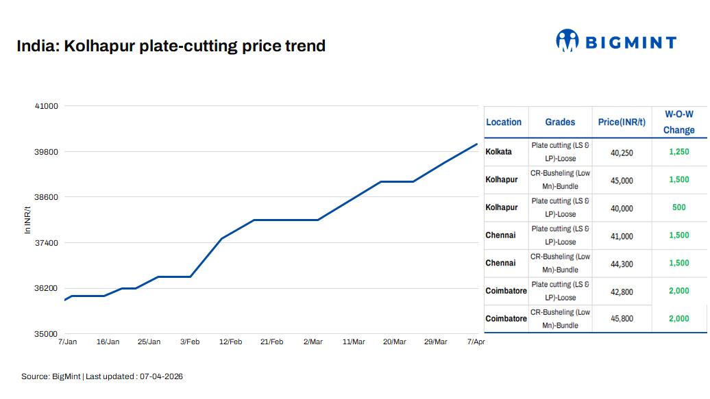 Plate-cutting scrap (4-8 mm) increased by INR 500/t to INR 40,000/t