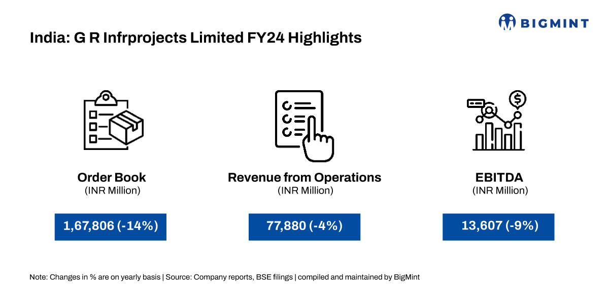 Order book down 14% y-o-y: The company’s order book stood at INR 1,67,806 million in FY24, down 14% y-o-y from INR 1,95,294 million in previous year.