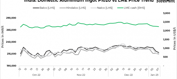 - Balco’s prices stand at INR 218,000/t ($2,650/t) while Hindalco’s prices are at INR 214,500/t ($2,607/t) exw, excluding GST.