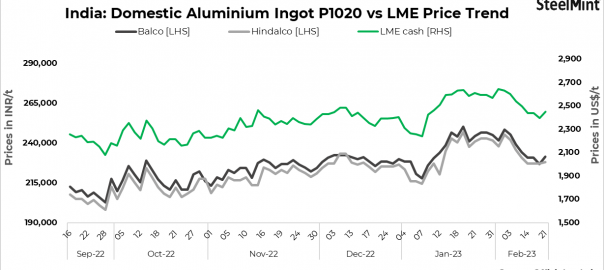 - Hindalco and Balco have increased primary aluminium ingots (P1020, 99.7%) prices by up to INR 4,750/t ($57/t) today.