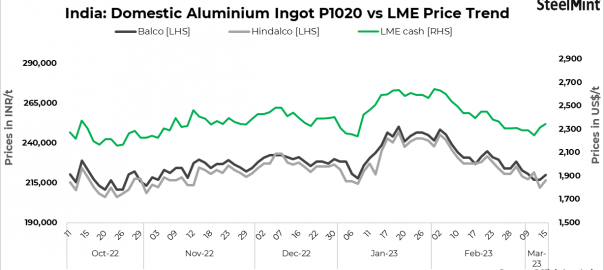 • Balco’s ADC12 prices are at INR 223,700/t, sow ingots (CG 99.5%) at INR 219,500/t and EC rods (12.5mm) at INR 226,500/t.