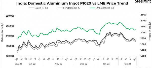 - Balco’s ADC12 and sow ingots (CG 99.5%) prices are at INR 233,200/t and INR 229,000/t and EC rods (12.5mm) are at INR 236,000/t, Hindalco’s sow ingots (CG 99.5%) prices are at INR 225,750/t.