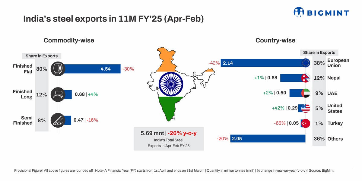 India’s steel export market participants are expected to remain cautious in the short term even as offers to Europe and the Middle East facing pressure amid weak demand and price volatility. Post-Eid holidays, the ME market may rebound gradually. However, Indian mills may struggle to maintain export offers due to competitive Chinese pricing and pressure from fluctuating Chinese HRC futures.