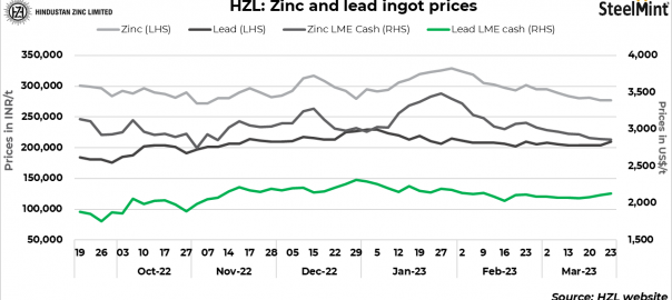 Hindustan Zinc Ltd (HZL), a subsidiary of Vedanta Ltd, has increased lead ingots prices by INR 5,700/t ($70/t) today as against the last revision on 21 Mar’23. Effective prices of lead ingots stand at INR 209,600/t ($2,550/t). Whereas special high-grade zinc ingots prices remained unchanged at INR 277,100/t ($3,372/t). All prices are on exw basis, excluding GST.