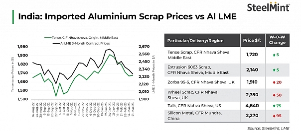 • US-origin aluminium tense scrap prices are assessed at $1,740/t CFR Nhava Sheva, up $20/t w-o-w.