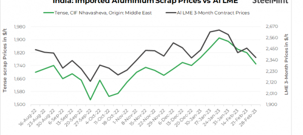- US-origin aluminium talk scrap prices are assessed at $4,570/t CFR Nhava Sheva, down $225/t w-o-w.