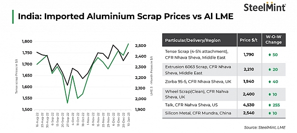 - Current indicative offers for aluminium scrap tense from the Middle East hovers at $1,780/t, increased by $40/t reported on 20 December, 2022.