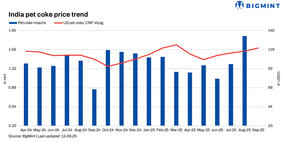 Imported pet coke offers in India moved higher w-o-w on stronger freights. US-origin offers climbed up to $118-120/t CFR, up $4/t w-o-w, with freights from the US Gulf Coast to the west coast of India rising by $5-7/t m-o-m to around $51-53/t. Saudi-origin pet coke offers also increased by $5/t w-o-w to $117-119/t CFR.