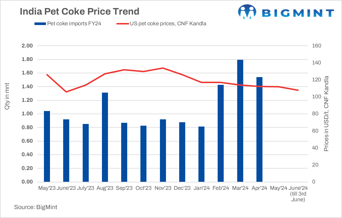 The import price of pet coke in the international market is moving in a narrow range. Prices of pet coke (S6.5) CFR India is in the range of $110-111/t against $111-112/t last week in the east coast of India. In a recent deal, a cement producer is heard to have concluded a deal for a Venezuelan Supramax vessel for $109/t CFR east coast, India.