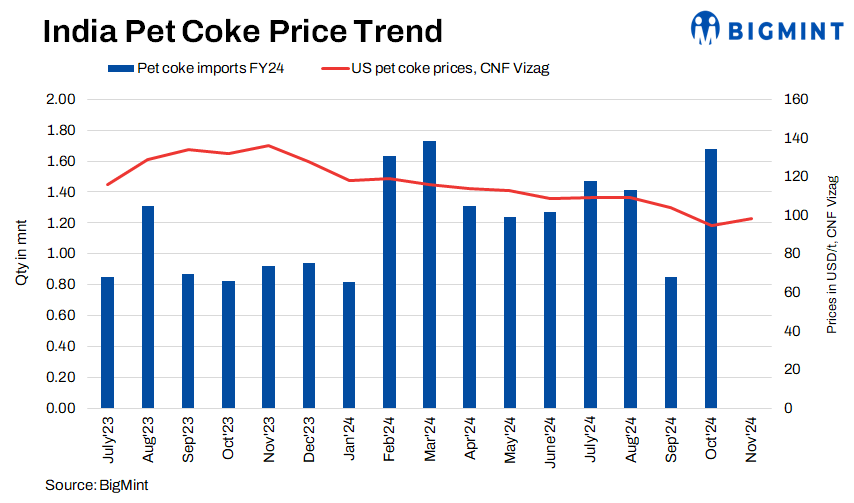 Prices of imported pet coke (6.5% S) increased this week, with CFR tags for the west coast assessed at $98-100/t and the east coast at $100-102/t, up from last week’s $95-96/t and $97-98/t, respectively. Despite limited trade, sellers raised tags, expecting a recovery in demand in the coming weeks.