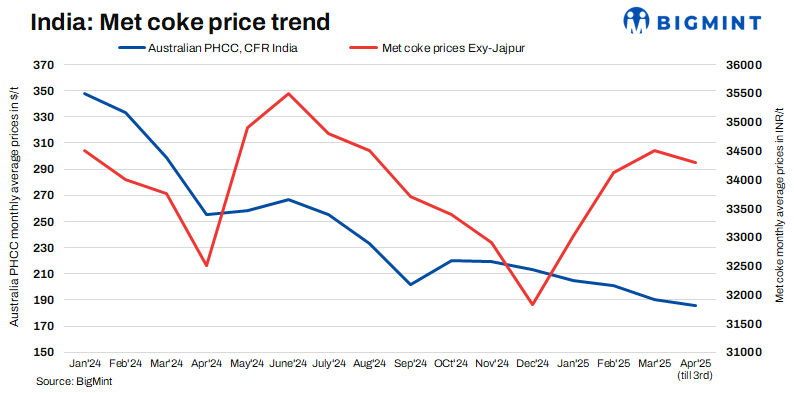 India initiates anti-dumping investigation into coke imports – India’s Directorate General of Trade Remedies (DGTR) has launched an inquiry into met coke imports from key supplying nations, including Australia, China, Colombia, Indonesia, Japan and Russia, following complaints from domestic producers about price undercutting and market distortions. BigMint received a copy of the circular dated 29 March, 2025.