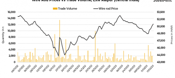 On a weekly basis, as per SteelMint’s assessment, the trade reference prices for wire rod in Raipur surged around INR 1,700/t to INR 51,000/t as against INR 49,300/t exw. Similarly, in the Durgapur market, it surged around INR 1,600/t to INR 50,800 against INR 49,300/t exw in the previous week.