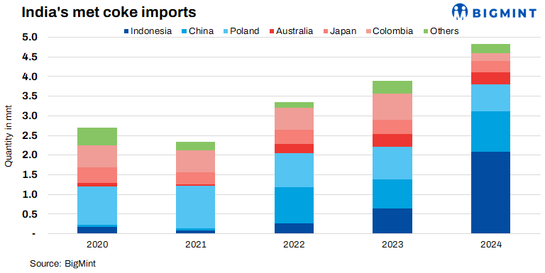 • India’s met coke imports decline to 2.5-year low in Feb’25