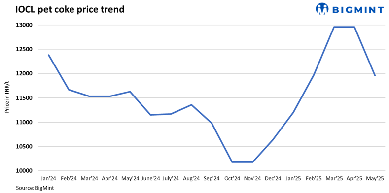 Indian Oil Corporation (IOC), the second-largest producer and leading seller of pet coke in the domestic market, announced a second price cut for May, effective from 10 May 2025. The reduction followed an earlier cut of INR 1,000/t on 4 May and reflects continued pressure from weak demand and rising inventories across its refineries.