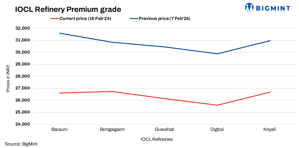 IOCL slashes fuel grade pet coke prices by up to INR 710/t for Feb’24