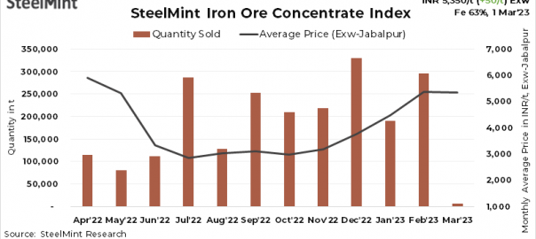 Iron ore concentrate prices in Jabalpur, central India, witnessed an increase this week due to stability in pellet prices and a hike in Odisha iron ore prices. Market participants are eagerly waiting for NMDC’s price revision for March 2023 to get better price clarity.