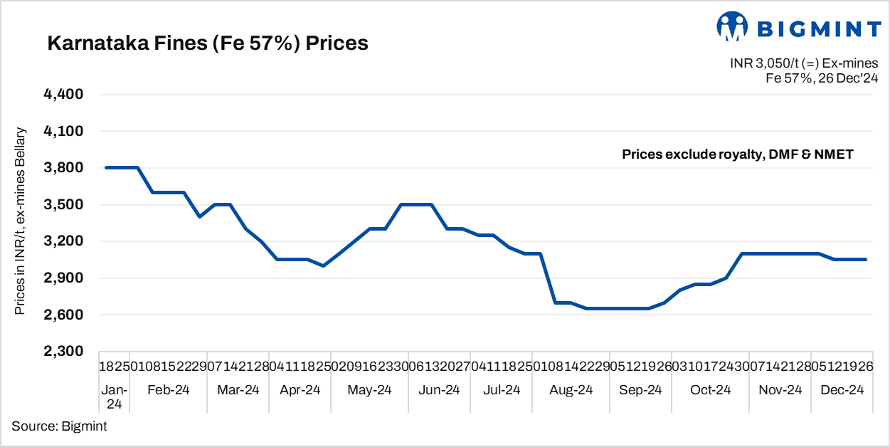 A Bellary-based buyer told BigMint, “NMDC’s price can be seen as a reference, as it was the only company to successfully conduct an auction. Other miners have not been offering, and auctions in general have slowed down. The market remains unclear on price direction, with the impact of the bill anticipated by the first week of January.”
