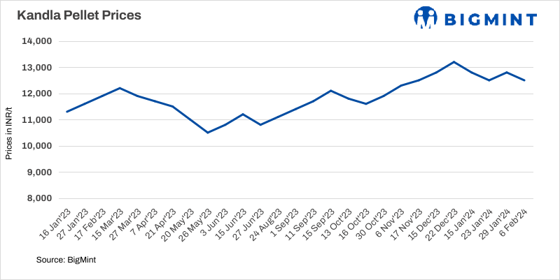 Jindal SAW has dropped pellet (Fe63%) offers by INR 300/t ($4/t) to INR 12,500/t ($150/t) DAP Kandla recently. The buyers booked 20,000 t of pellets at new offers. The pellet offers fell as iron ore (Fe 62%) fines spot prices declined by $10/t w-o-w to $127/t CFR China amid the Lunar holidays have lowered imported lump offers.