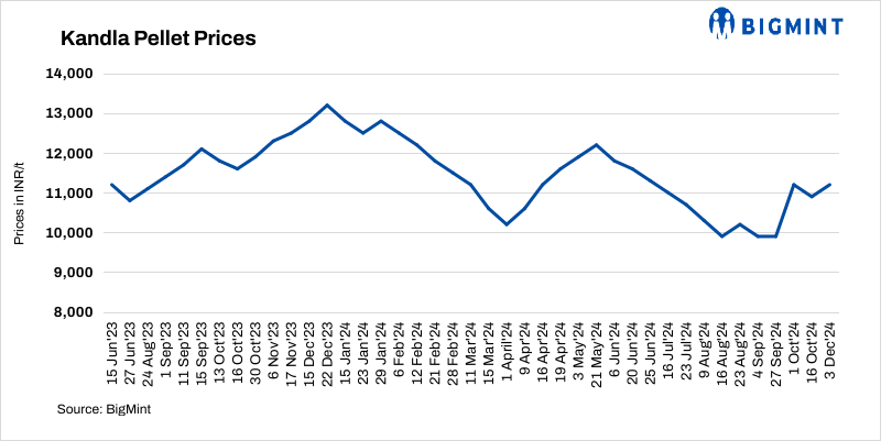 Jindal SAW increased its pellet (Fe63%) offers by INR 300/t ($4/t) to INR 11,200/t ($132/t) DAP Kandla on 3 Dec’24. Higher iron ore offers in the domestic market, along with a surge in the global fines index, prompted the price hike. China’s spot prices of iron ore (Fe 62%) fines increased by $9/t in the last two weeks to $106/t CFR on 2 Dec.