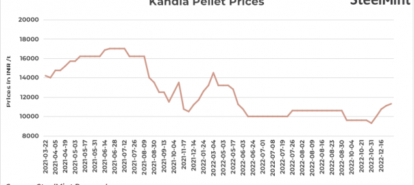 Global iron ore prices have risen by $3.1/t in the last two weeks ($13/t m-o-m) to $120.75/t as on 16 Jan’23. This coupled with rising iron ore and steel prices in the domestic market pushed up pellets prices in Kandla.
