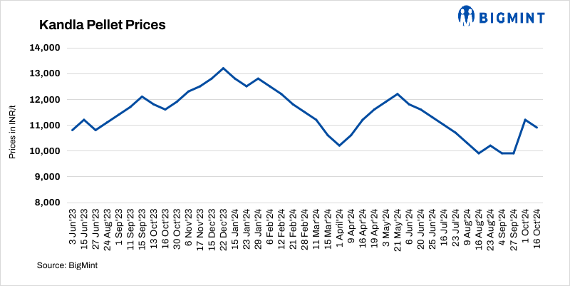 Jindal SAW recently reduced their pellet (Fe63%) offers by INR 300/t ($4/t) to INR 10,900/t ($130/t) DAP Kandla, with a 5,000 t deal reported at the revised prices. Competitive offers from the Eastern region plants and fluctuations in global fines prices influenced the drop in pellet tags. Spot prices for iron ore (Fe 62%) fines remained stable w-o-w at $105/t CFR China on 15 Oct.