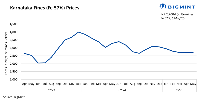 Notably, the National Mineral Development Corporation (NMDC) once again rolled over its iron ore prices for its auction on 30 April 2025, which, along with material shortages, helped sustain domestic prices, BigMint understands.