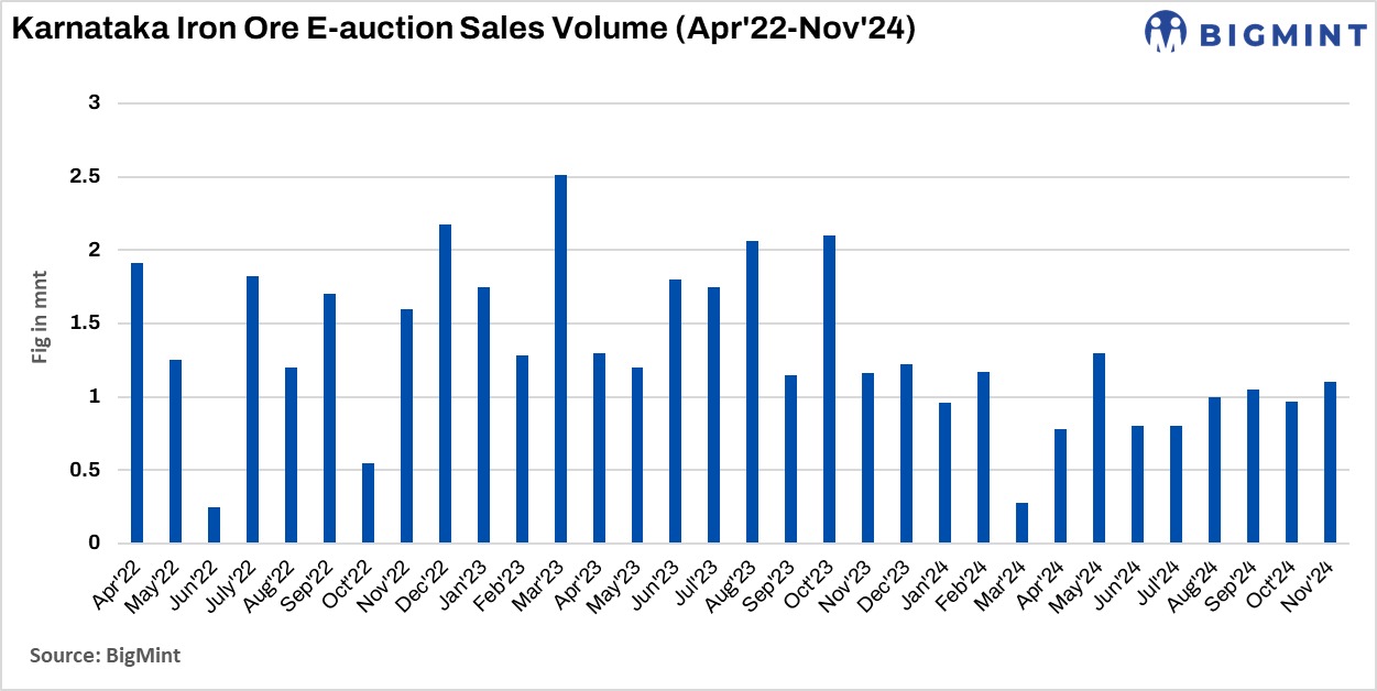 Around 272,000 t of iron ore will be auctioned from Karnataka.