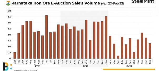 • SMIORE will conduct an auction of 1,000 t of fines (Fe57.20%) at a base price of INR 3,550/t on 21 March.