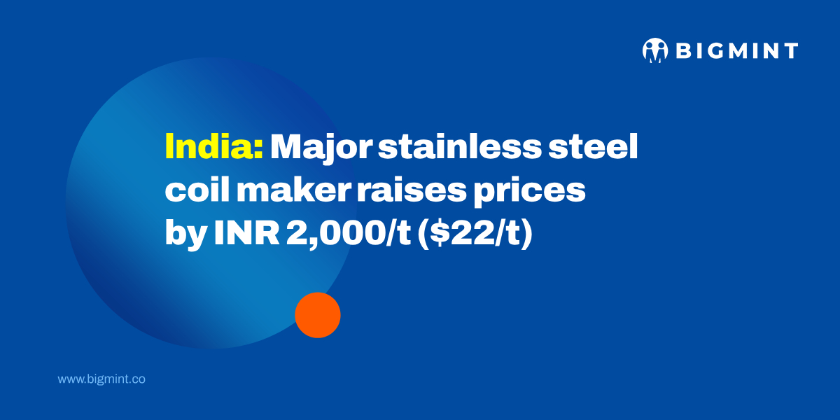 India: Leading stainless steel coil maker hikes prices by INR 2,000/t ($22/t)